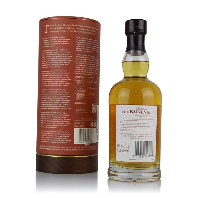 A highly limited release of Balvenie matured for 20 years and then further matured for 7 years in rare casks that previously held Caroni rum. The casks for this release were purchased in 2009 by William Grant & Sons who matured the closed distillery rum for an additional 10 years. Once the stock was sold to bottlers and wholesalers, Balvenie retained the casks and filled 20 year old mature Balvenie spirit into them. This release was bottled in 2022 at 48% Abv.