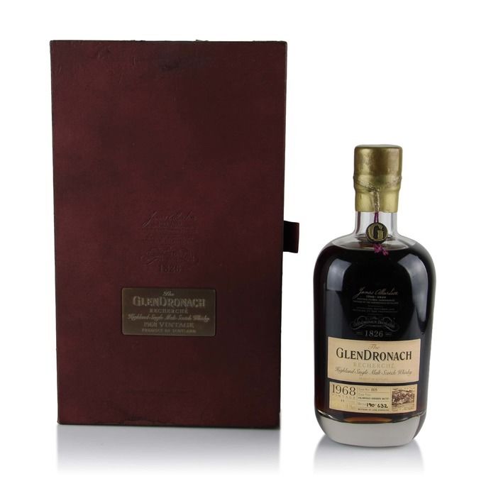 A truly stunning single cask expression of Glendronach distilled in 1968 and matured for an incredible 44 years in an Oloroso sherry butt. The Recherche edition was released in 2013, with ths cask being bottled at 48.65 Abv. **Please note the condition of the box and the fragile nature of the outer leather crumbling.
