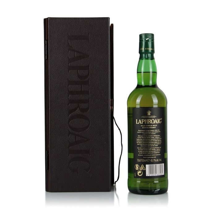 A 2016 release of Laphroaig matured for 25 years and bottled at a cask strength of 45.1% Abv. ***Please note the outer leather of this lot has torn away. CAREFULLY inspect images.
