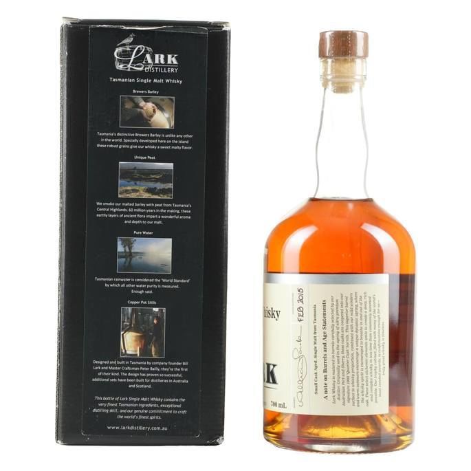Lark was the first craft whisky distillery in Australia, established in Tasmania in 1992. Bill Lark not only founded a distillery but was a pioneer that inspired and enabled todays rapidly growing Australian whisky industry. This bottle of Classic Cask - Small Cask Aged is an early example of the continuing Classic Cask releases and the early versions were aged in quarter casks to improve the speed of maturation. This edition was bottled in February 2015 at 43% ABV