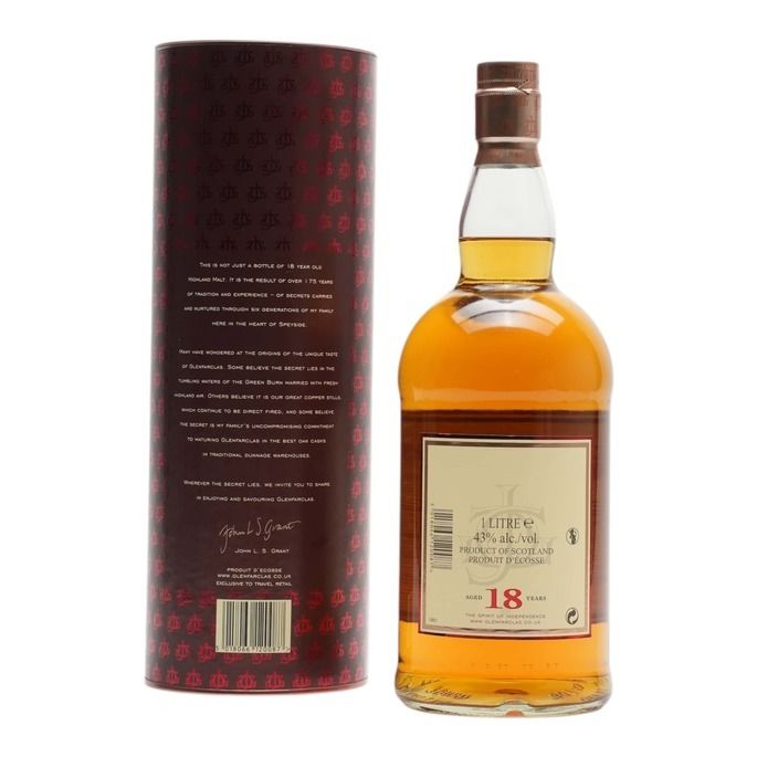Bottled for travel retail, this 1 litre version of the Glenfarclas 18 year old was matured exclusively in European oak sherry casks and bottled at 43% ABV.