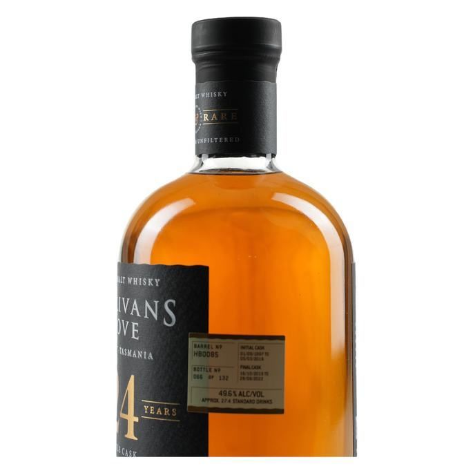 The last of Sullivans Cove's rare 'lost casks'. After 21 years of maturation, this whisky was transfered into an American oak ex-Bourbon finishing cask. Distilled in September 1997 and decanted in September 2022 after 24 years of maturation. One of 132 bottles at 49.6% ABV.