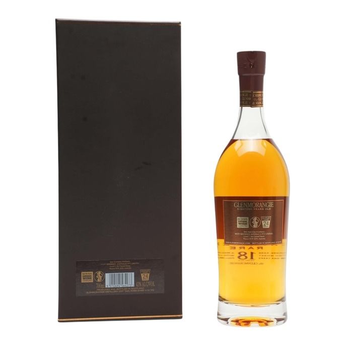 An older edition of Glenmorangie's 'Extremely Rare' 18 Year Old single malt expression. This release spend 15 years in ex-bourbon casks before a 3 year finishing period in Spanish sherry casks.