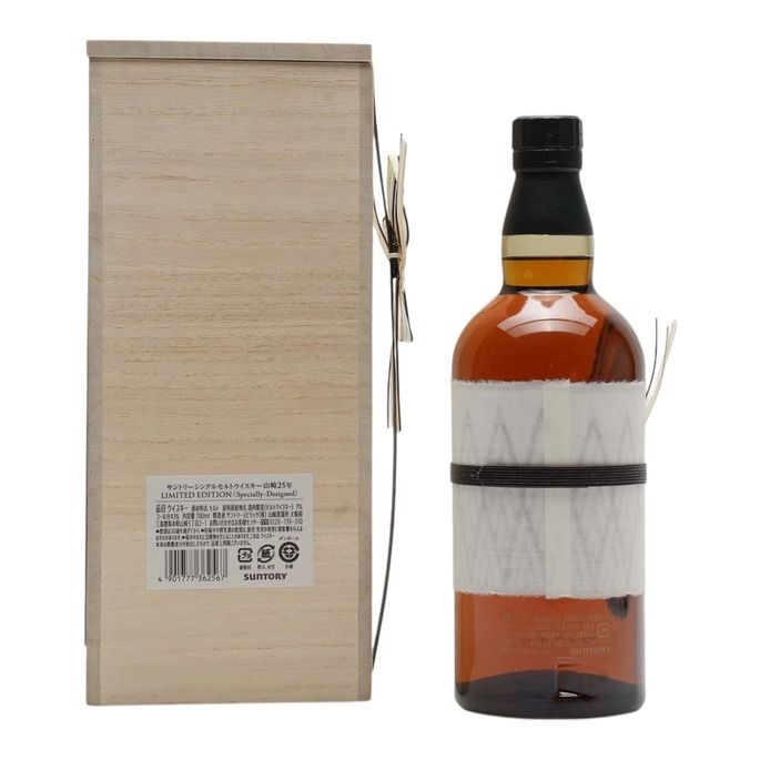 A truly stunning limited release of Yamazaki whisky matured for a huge 25 years in exceptional quality Oloroso sherry casks. Limited to just 100 bottles worldwide, this special release is adorned with Mizuhiki cortd, symbolising the joining of hands and hearts of the giver and recipient. The box is crafted from Paulownia and is decorated using traditional Washi paper. Releases of this kind are few and far between, with 25 Year Old Yamazaki heralded as some of the best liquid produced in the country.