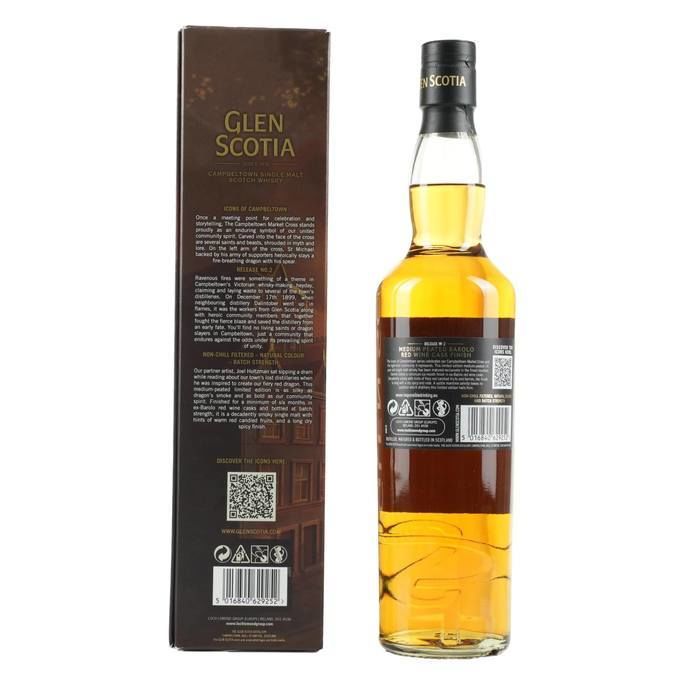 Glen Scotia 14 Year Old Barolo Red Wine Finish is a single malt whisky from the Glen Scotia distillery. This limited edition was finished in Barolo red wine casks for six months and is bottled at 56.8% ABV